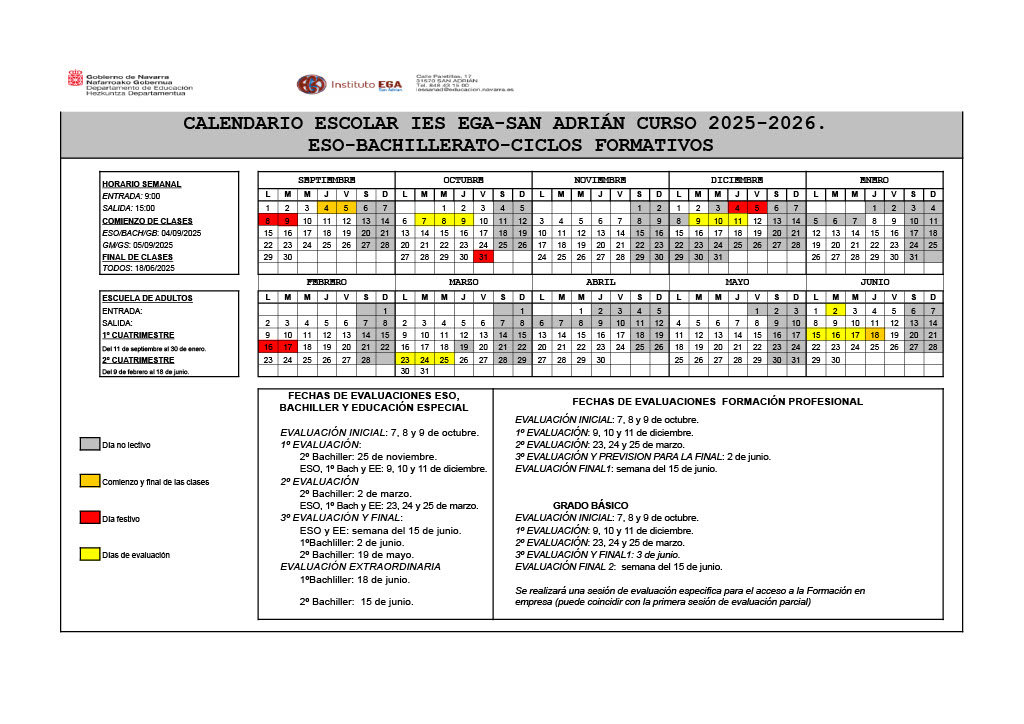 Calendario escolar - IES Ega San Adrián - Ikasnova
